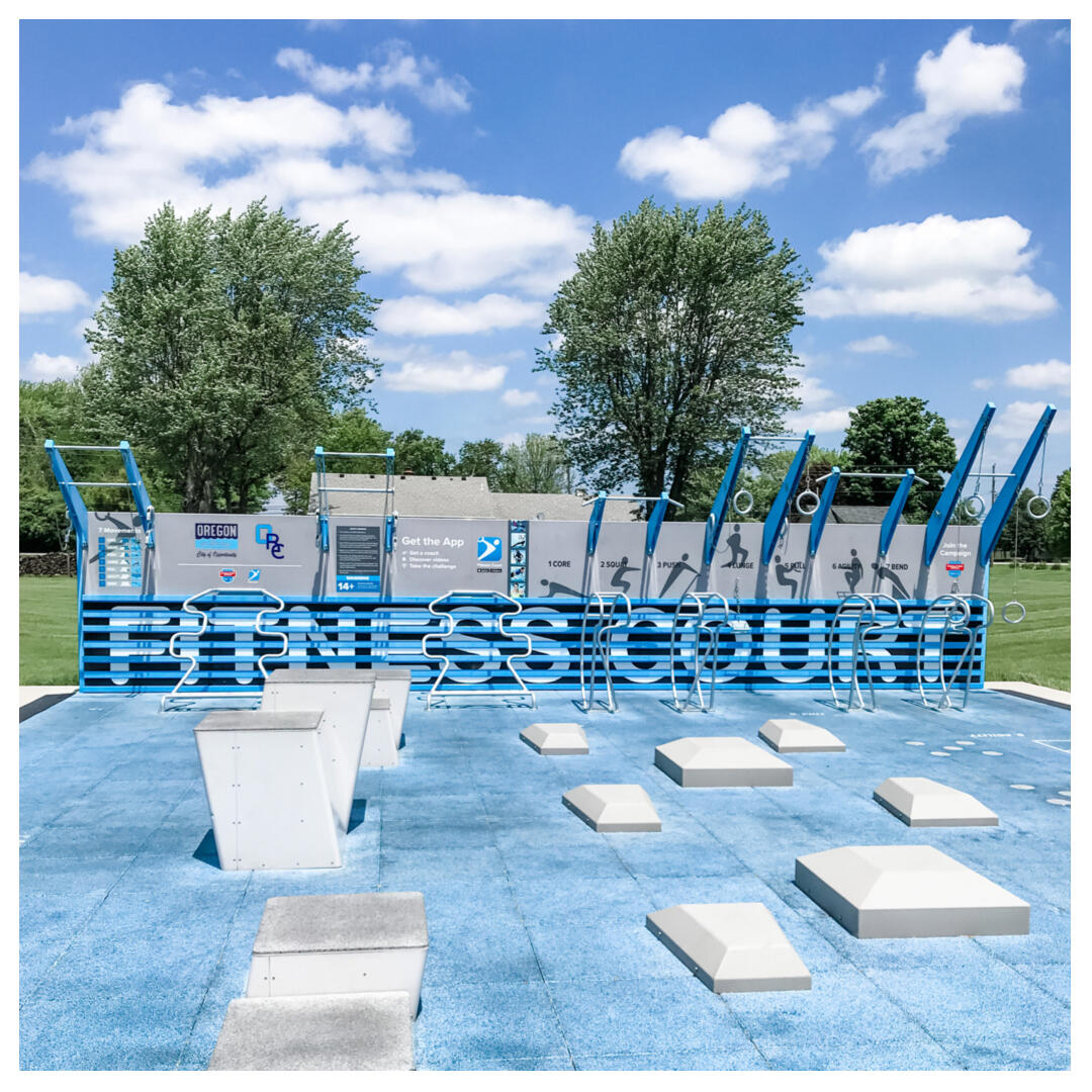 An outdoor fitness court I discovered during a 10 mile bike ride on Memorial Day weekend