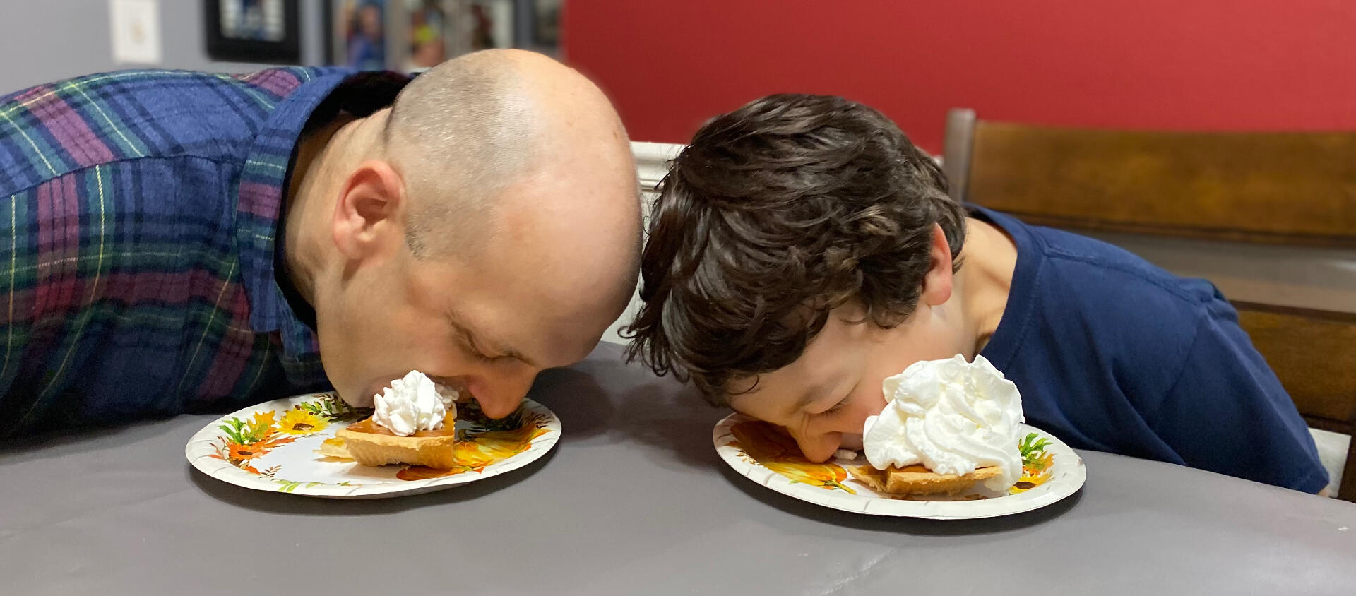 Had a pie-eating contest with my nephew Wade after Thanksgiving dinner. We watched the Lions lose another game on the last play.
