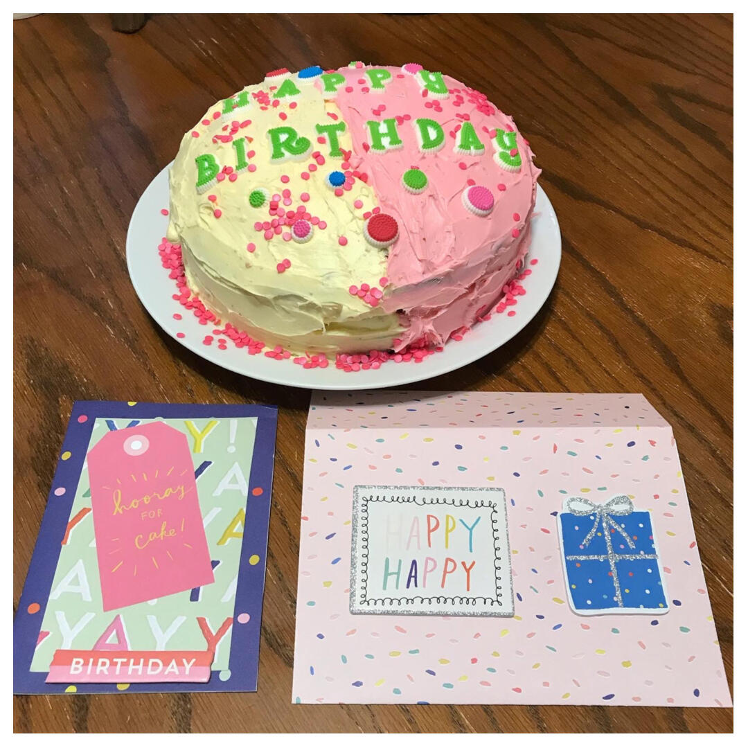 I made a homemade strawberry cake, card, and envelope for Junell's birthday. The cake is half strawberry and half buttercream frosting, with a thick middle layer. It was excellent!