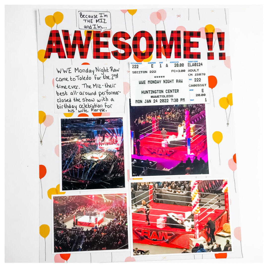 Junell challenged me to create a scrapbook layout. I did the Maryse birthday segment from Monday Night Raw in Toledo.